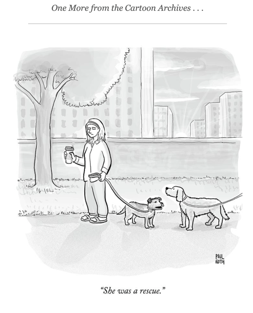This showed up today in the New Yorker daily newsletter I get for free. I like the cartoons.