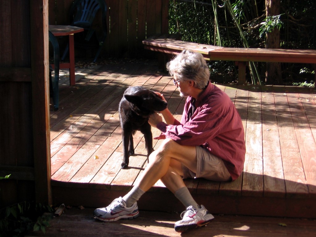 Old Dog’s Ditty (Bare bones version)Old dog’s on the deck: Dave with Daimin on the furry one’s last day above ground, September 15, 2008.