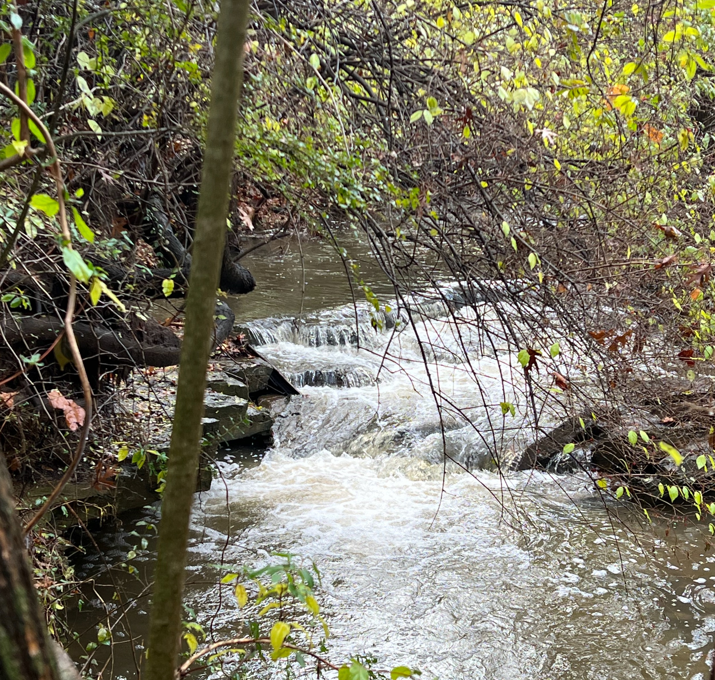 We had about an inch and a half of rain last night here in northwest Arkansas. After breakfast I walked down to the south end of our property to visit our natural neighbor, Scull Creek and its enchanting waterfall. I sometimes talk to streams, trees, critters and other fellow earthlings. I don’t know if they hear or understand me in any way, but I enjoy it, and they speak to me in their own ways.